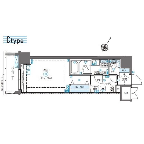 間取り | 1K | 専有面積 | 26.1m2 |